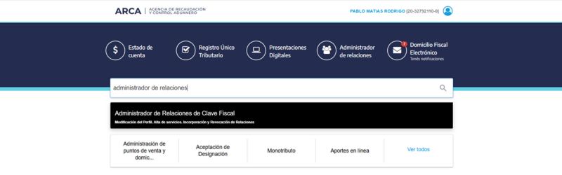 Buscar "Administrador de relaciones de clave fiscal".