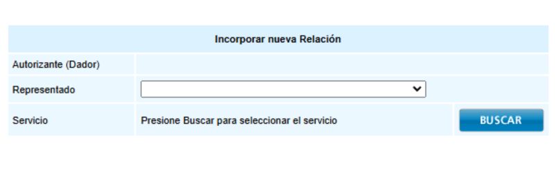 En "Representante", presiona "Buscar" y completa con el CUIT/Usuario con el cuit de PymesPlus: 20327921100