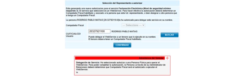 Completa "Representado" con el CUIT que usará para facturar(20327921100).
